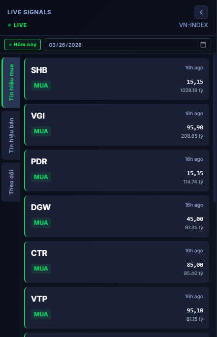 - Sau khi đăng nhập, NĐT theo dõi realtime mục LiveSignal – Tín hiệu mua